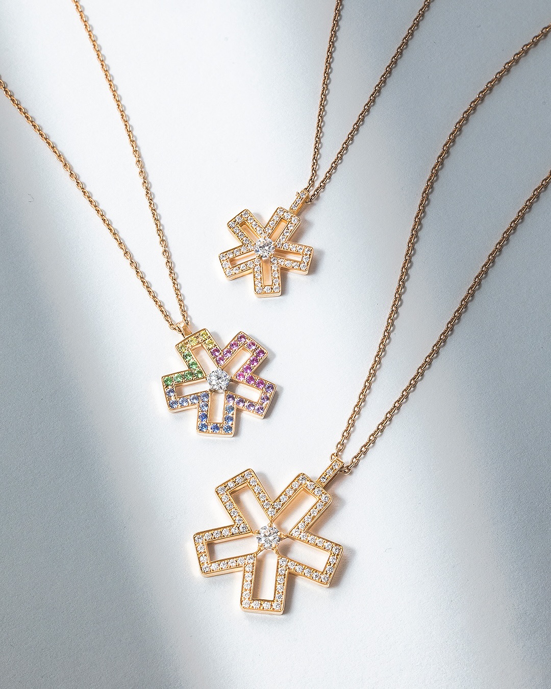 K18ピンクゴールド プラチナ ダイヤモンド Center total 0.20ct イエローダイヤモンド total 0.05ct サファイア total 0.60ct グリーンガーネット total 0.10ct